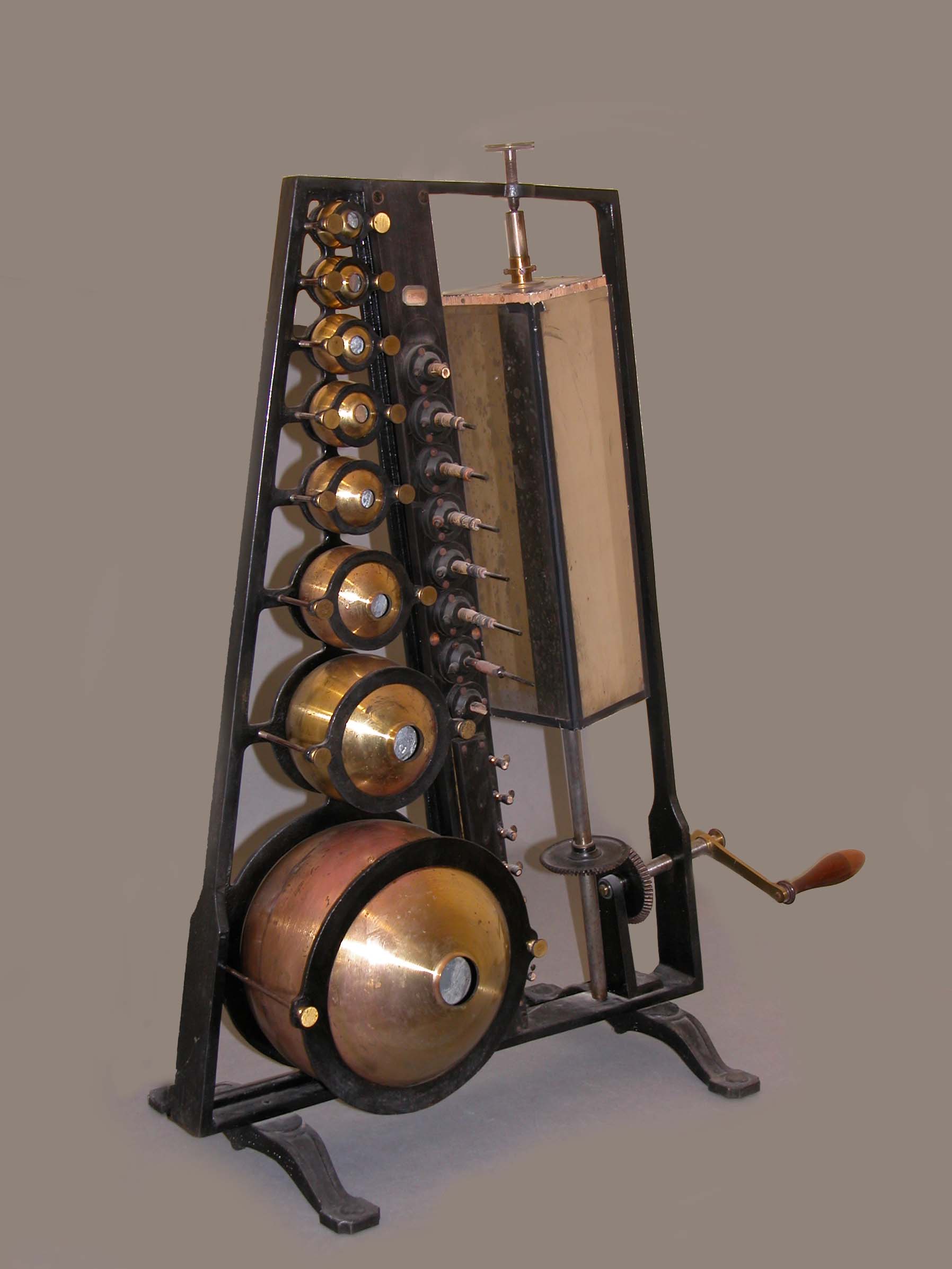 Trata-se de um analisador de som, isto é, um aparelho que serve para mostrar quais as partes constituintes de um som complexo. É constituído por uma série de oito ressoadores, o que corresponde a um som fundamental e à serie dos seus sete harmónicos, distribuídos verticalmente uns por cima dos outros e por um conjunto de 4 espelhos rotativos para realizar as observações utilizando o método óptico. Com um instrumento idêntico a este Helmholtz mostrou que o timbre de um instrumento é devido à sobreposição do som fundamental e de harmónicos de ordem e intensidade variáveis.