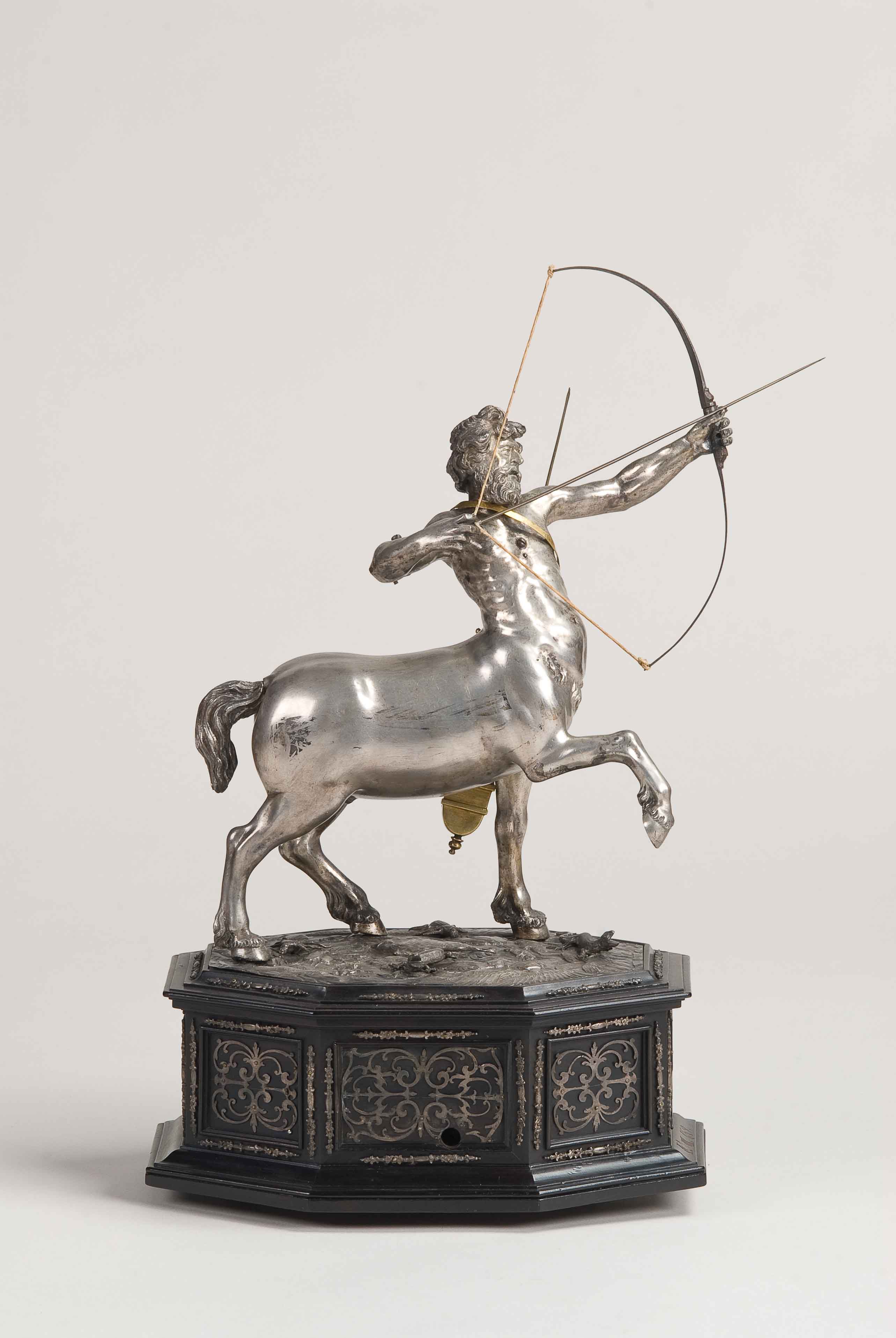 O centauro de prata está apoiado numa base, onde se podem observar outras figuras: sapos, caracóis e insetos. Em relevo vêem-se dois insetos e dois sardões, estes últimos como que se arrastassem por entre as pernas do centauro. Tem a pata dianteira erguida, o braço esquerdo estendido segurando um arco, o corpo tenso, pronto a disparar a seta.
