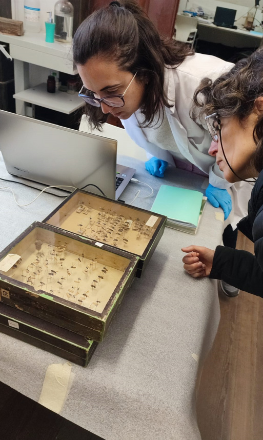 Em relação às borboletas foram já inventariados mais de 3000 espécimes e quase todos identificados até à espécie com a ajuda dos especialistas Eduardo Marabuto e Tatiana Moreira. Ficando a faltar cerca de 1500 borboletas que pretendemos inventariar até ao final deste mês. A “Coleção Nacional” foi indexada, na sua maioria, pela curadora da Zoologia, Cristina Rufino e por um voluntário, Daniel Ribeiro, as coleções “Rosário Pires” de 1980’s e “Pedagógica”, exemplares coletados entre 1987 e 1990 fizeram parte do plano de trabalho de 2 estágios de verão em 2024, do Diogo Vital da Universidade de Aveiro e da Catarina Moniz da Universidade de Coimbra. E, finalmente a coleção do “Colégio de S. Fiel – Cândido de Azevedo Mendes e Joaquim da Silva Tavares”, que está a ser inventariada pela curadora da Zoologia e alunos de Biologia: Ana Costa, Lara Ribeiro, Daniel Laranjeira, Inês Carvalho e Maria Silva. Esta coleção contém, também, exemplares de outros coletores como: Manuel Paulino de Oliveira, Duquesa de Palmela, António Augusto Carvalho Monteiro, Wenceslau de Sousa Pereira Lima, do final do séc. XIX e Anthero Frederico de Seabra, Ernest Matthes, João Miguel Ladeiro, António Paulo, Armando Alves dos Santos, Eusébio Tamagnini, D. F. Noronha, até meados do século XX.