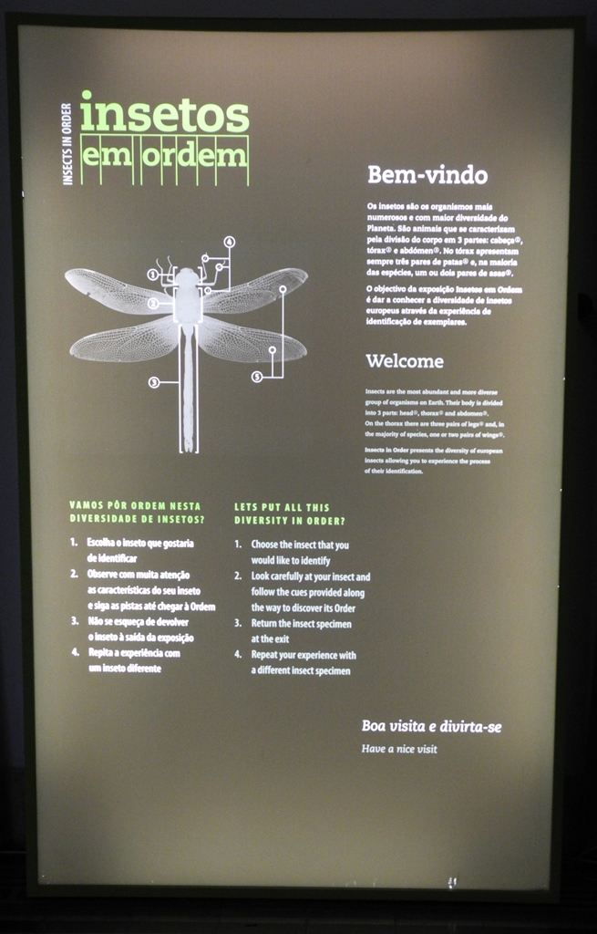 Insetos em ordem é uma exposição sobre a diversidade de insetos da fauna europeia, que inclui exemplares de coleções biológicas pertencentes a mais de 50 espécies de insetos.