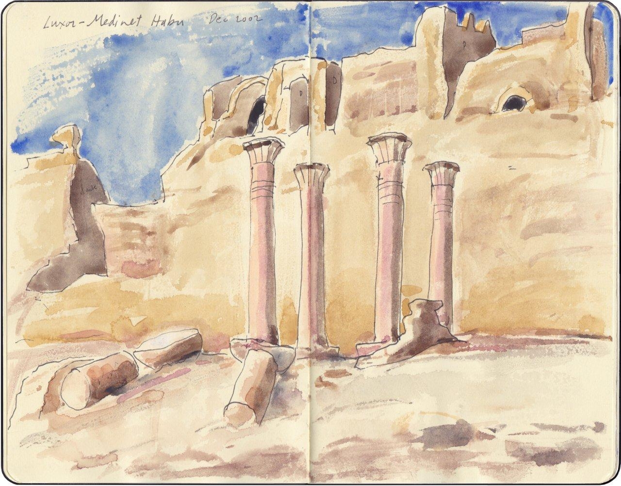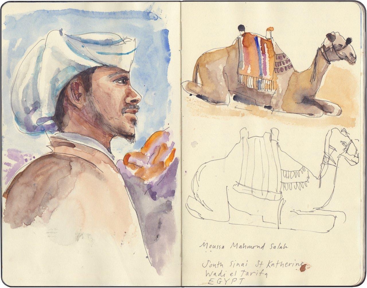 A exposição inclui trabalhos de arte contemporânea incluindo esboços de viagens e várias séries de intrigantes pinturas e impressões. As suas inspirações são variadas: grafitis antigos, um antigo mapa do Médio Oriente cartografado pelo Grande Idrisi e as suas muitas experiências de mais de trinta anos de trabalho e de viagem pelo Egipto.
