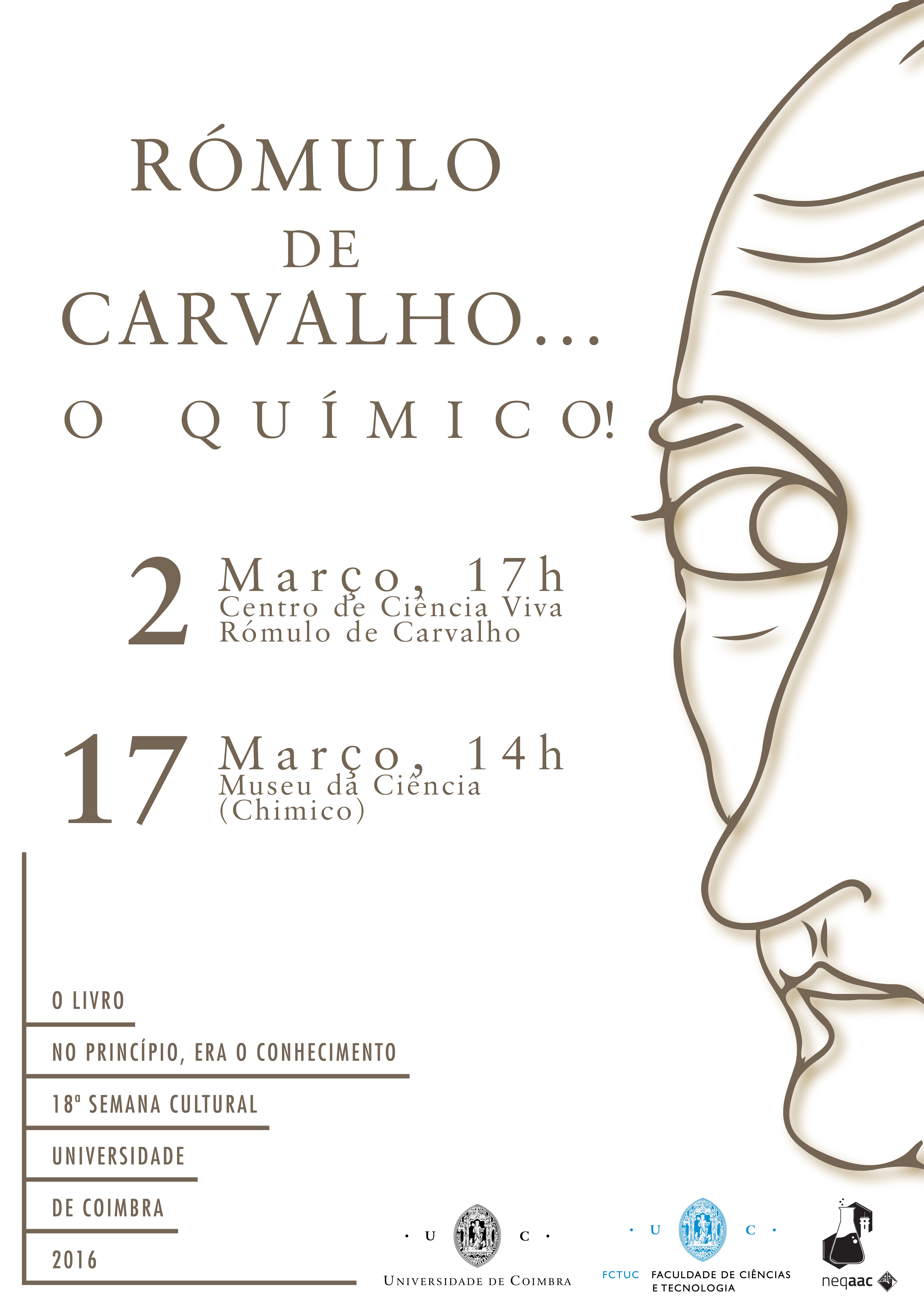 Demonstrações de química com poesia: atividades inspiradas nas contribuições químicas da obra científica e pedagógica de Rómulo de Carvalho e poética de António Gedeão. A realizar pelos estudantes do Departamento de Química, tendo como público alvo alunos do Ensino Básico e Secundário para serem realizadas nas escolas.