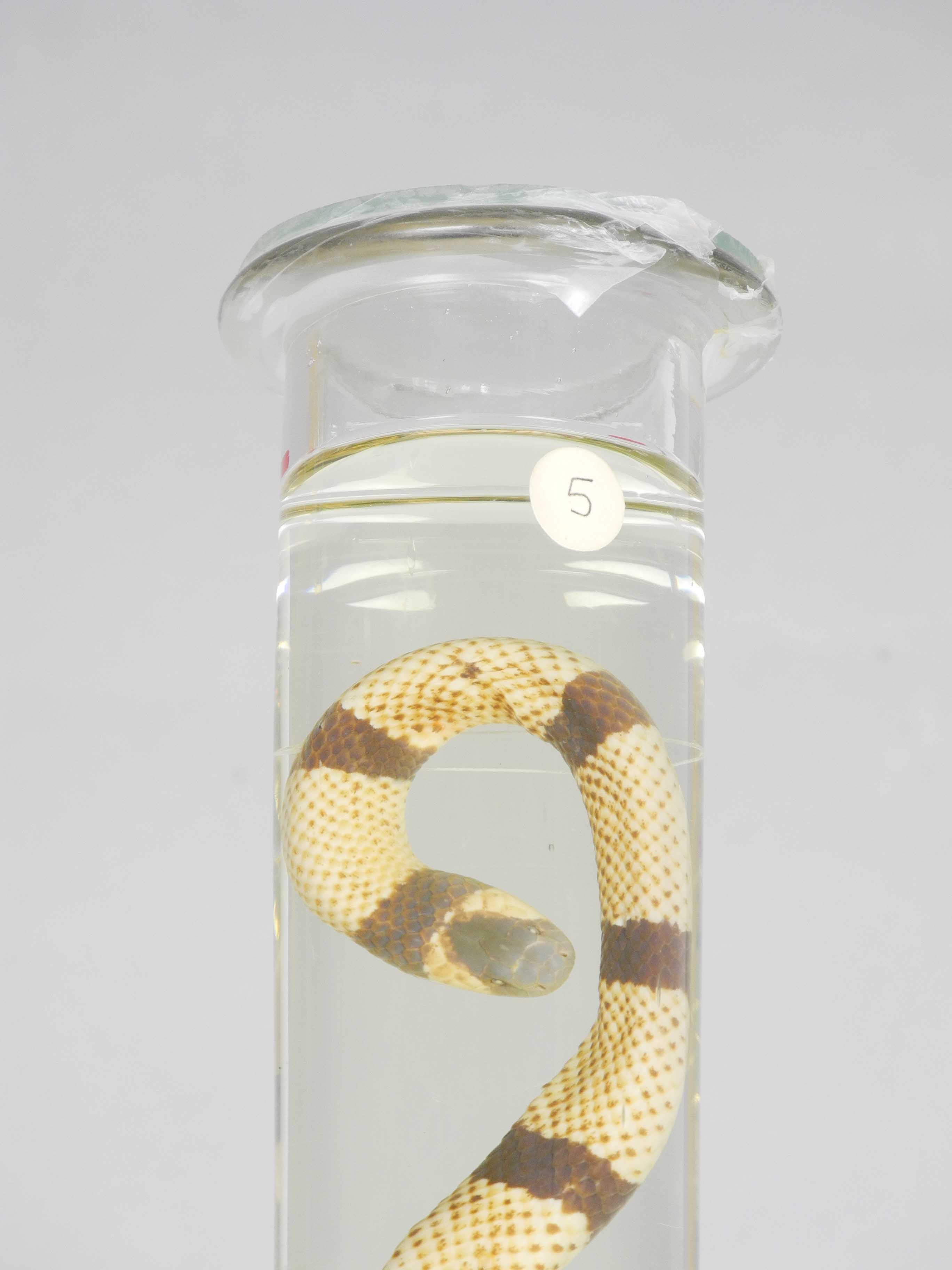 Este exemplar da cobra-coral-verdadeira foi recolhido no Brasil e, posteriormente, incorporado na coleção de Zoologia do Museu por Manuel Paulino de Oliveira (1837-1899). Nascido em Bragança (Nordeste de Portugal) foi lente da Faculdade de Filosofia e diretor do Museu Zoológico entre 1889 e 1897. Estudioso notável que se dedicou a investigação da fauna portuguesa, publicou diversos catálogos e artigos relevantes e descreveu espécies novas para a Ciência.