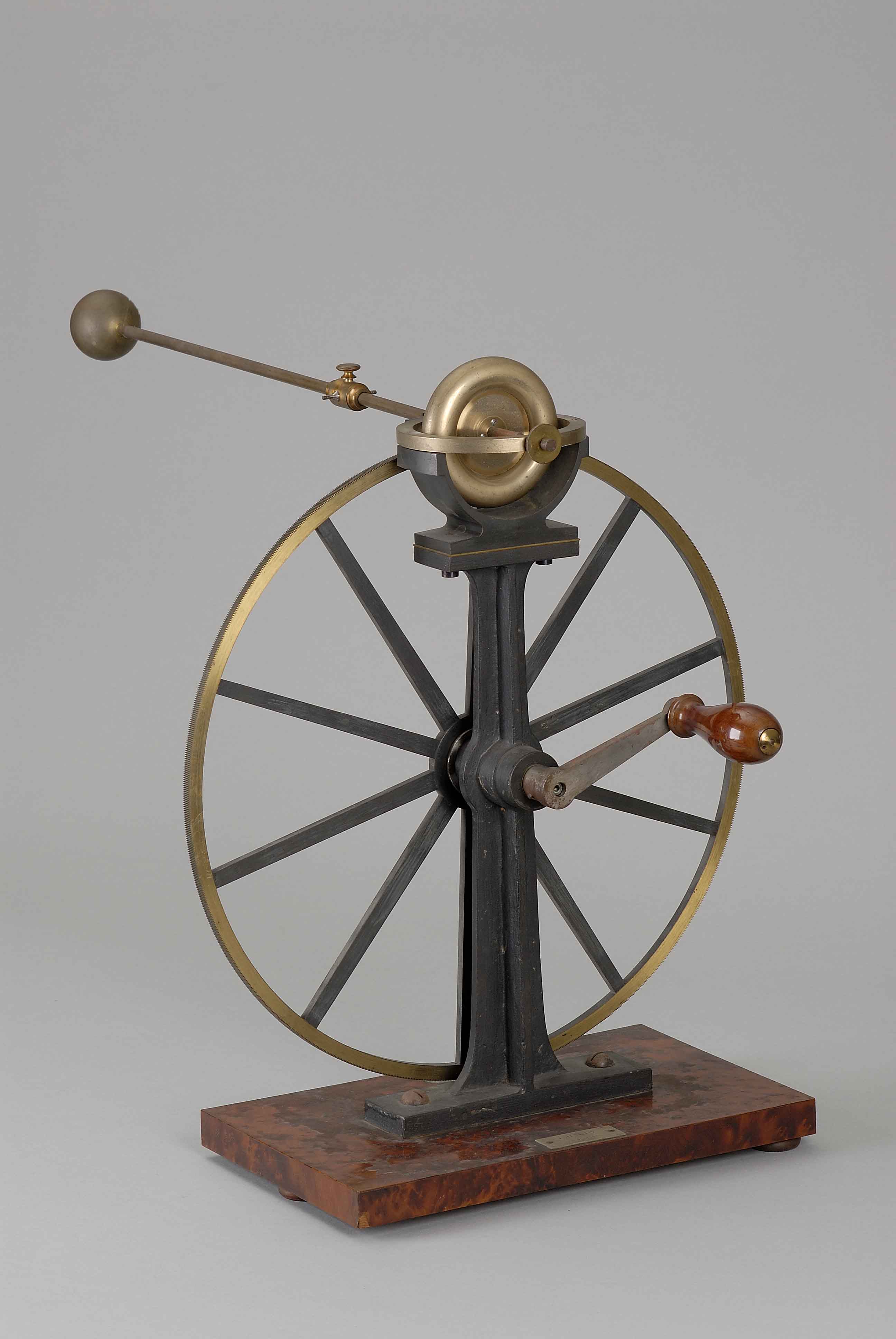 O giroscópio é mais uma invenção de Jean Léon Foucault (1819-1868), notável físico do séc. XIX a quem se deve a determinação da velocidade da luz e uma célebre experiência com um pêndulo de longo comprimento, que ficou desde então conhecido por pêndulo de Foucault, com o qual claramente demonstrou, pela primeira vez, o movimento da rotação da Terra. Foucault concebe depois, ainda para demonstrar ou provar o mesmo movimento, o giroscópio. É como a materialização das trajectórias circulares de infinitos pêndulos com um plano comum e oscilando em torno de um eixo perpendicular e esse plano, formarão um anel que roda em torno de um eixo perpendicular ao seu plano e que enquanto roda mantem esse eixo sempre paralelo a si próprio.