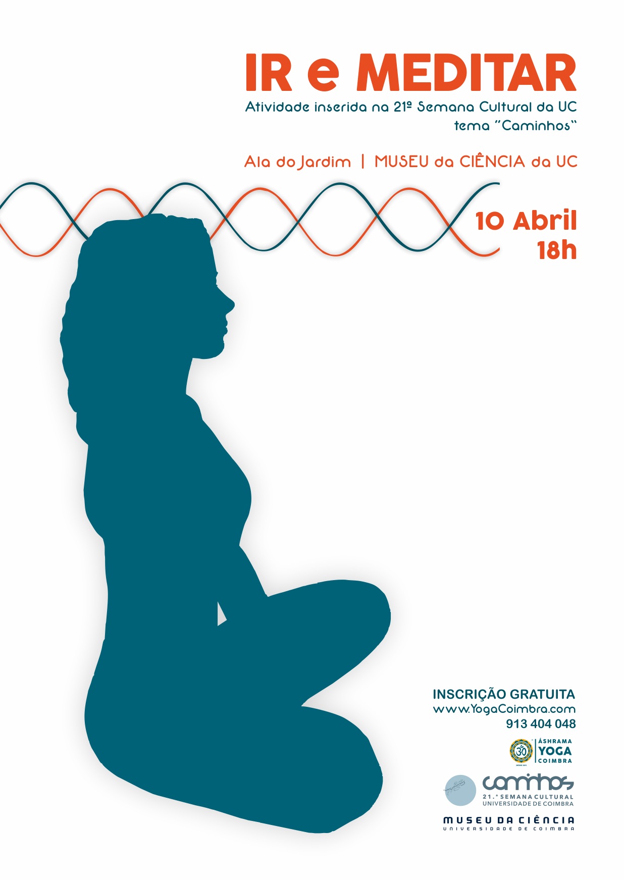 Foi nos caminhos percorridos na época dos descobrimentos que o Yoga  chegou à Península Ibérica, mais concretamente a Portugal. IR e MEDITAR é  uma iniciativa, que será dinamizada pelos Instrutores do Áshrama Yoga  Coimbra, que consiste numa sessão de meditação, com a duração de 30  minutos, realizada na Ala do Jardim do Museu da Ciência da Universidade  de Coimbra. Nesta iniciativa, os participantes serão convidados a  descobrir‑se, percorrendo os seus caminhos interiores através da  meditação.